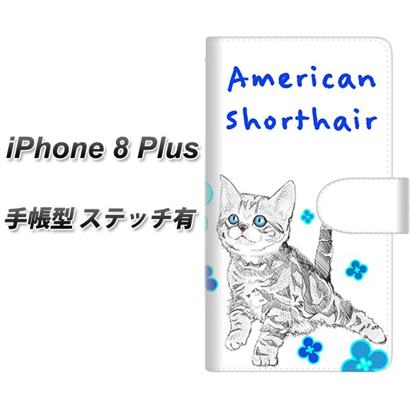 iPhone8 PLUS 手帳型スマホケース 【ステッチタイプ】【YE813 アメリカンショートヘア02】(アイフォン8 プラス/IPHONE8PULS/スマホケース/手帳式)